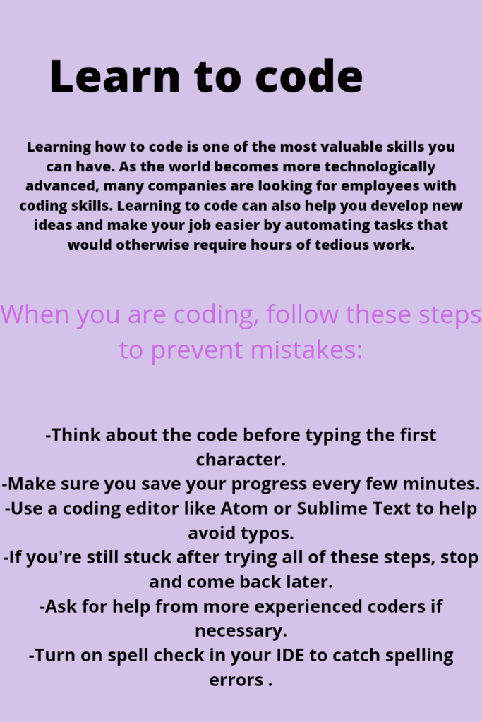 Learning how to code is one of the most valuable skills you can have. As the world becomes more technologically advanced, many companies are looking for employees with coding skills. Learning to code can also help you develop new ideas and make your job easier by automating tasks that would otherwise require hours of tedious work.
