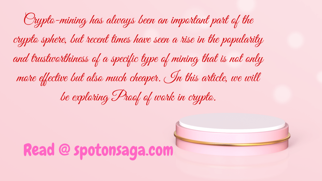 The idea of proof of work is a concept that has been embedded in Bitcoin and other cryptocurrencies since the beginning of their existence. The basic idea is to use cryptographic puzzles as a way to prove that someone has made an effort to perform certain actions, like mining or securing the blockchain network.